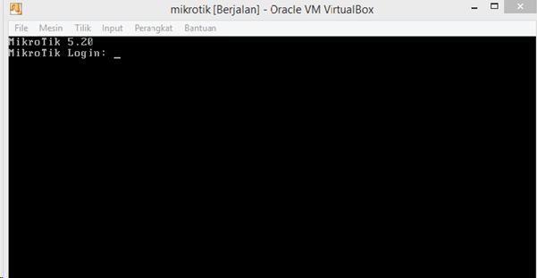 Pertama kita buka dulu aplikasi virtualboxnya dan jalankan mesin virtual mikrotik yang kita instal pada postingan kemaren. Tampilannya seperti di bawah ini. Bagi yang belum mengetahuinya klik disini.