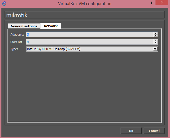 Setelah itu pilih tab Network dan tuliskan angka 4 pada box Adapters. Yang lain biarkan saja. Kemudian klik oke.