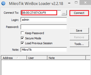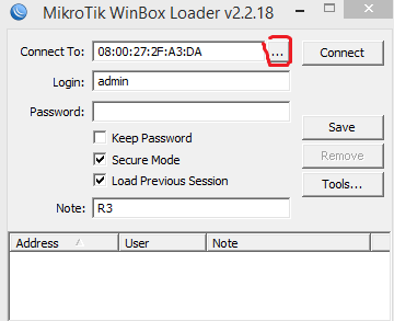 Tentunya anda sudah tau apa kegunaan winbox. Klik kotak merah yang sudah saya tandai.