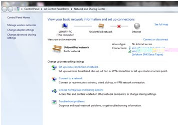 Pertama tama kita buat jaringan ad hoc nya lebih dulu,ikuti langkah berikut Langkah pertama klik icon signal pada bagian bawah lcd –>open network and sharing center