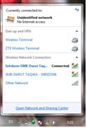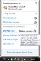 Pertama tama kita buat jaringan ad hoc nya lebih dulu,ikuti langkah berikut Langkah pertama klik icon signal pada bagian bawah lcd –>open network and sharing center