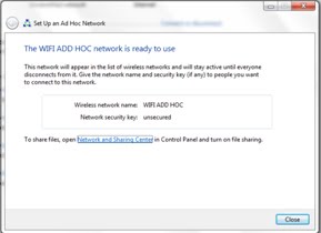 klik close dan ada pesan bahwa jaringan wifi siap digunakan